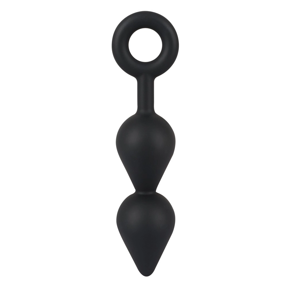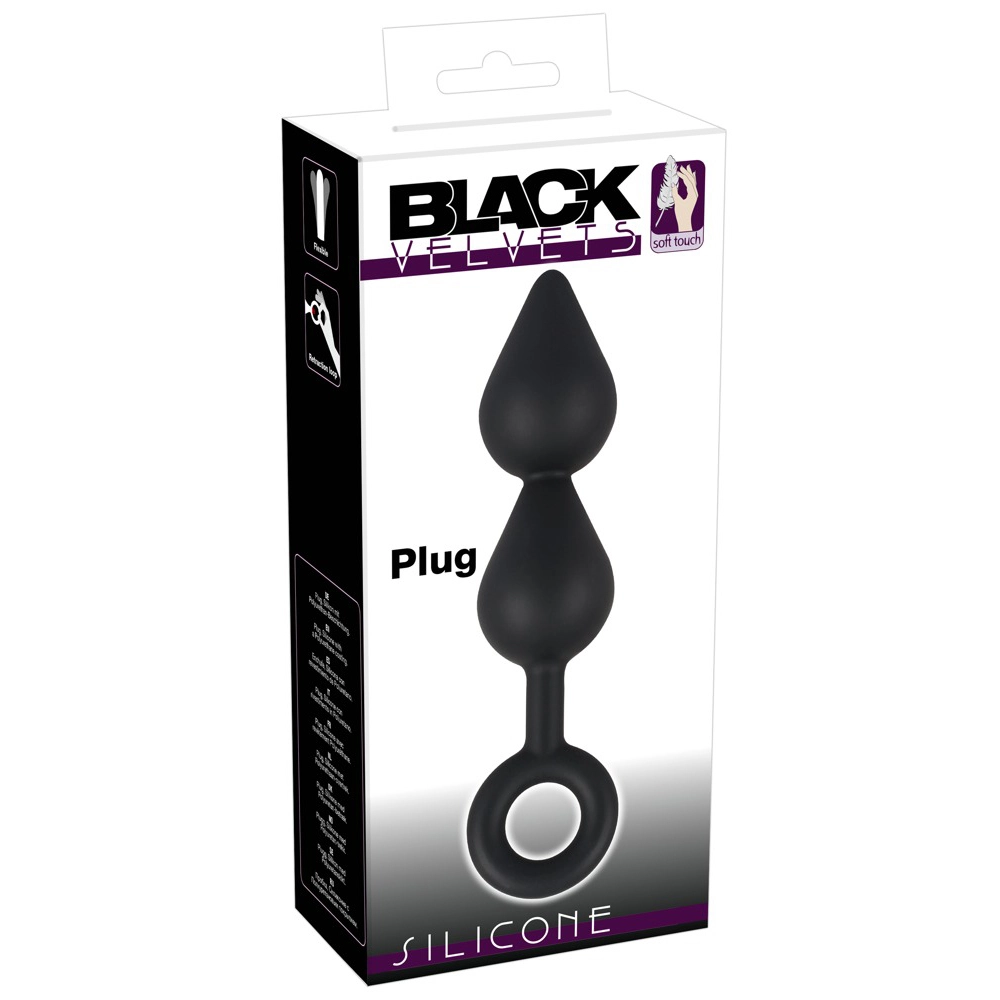 This flexible butt plug has a velvety soft touch surface and feels wonderful when it is being inserted into your pleasure zone. Feel the tip of the first droplet gently pushing its way through so that its large body and narrow neck can follow. Once the first droplet is inside, the second one can then follow. The retraction ring makes sure that the plug stays in place and makes removal extremely easy as well. Black Complete length 19.8 cm, insertion depth 12.5 cm, Ø 4.5 cm. Silicone with a PU coating, phthalate-free according to EU Regulation REACH.