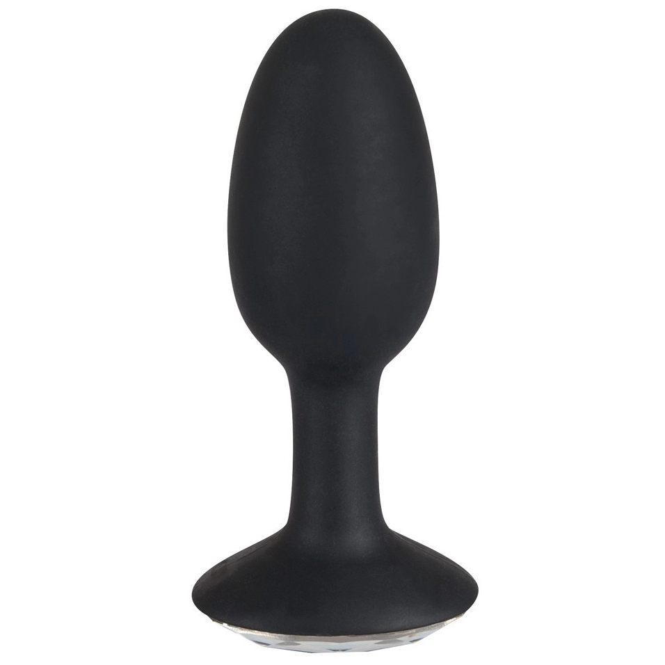 Het anal juweeltje! Buigzame anale plug in eivorm met kleurloos juweel op het einde. Zwart. Totale lengte 11cm, Ø 1,1 – 2,8 cm. Materiaal: silicone, acryl.