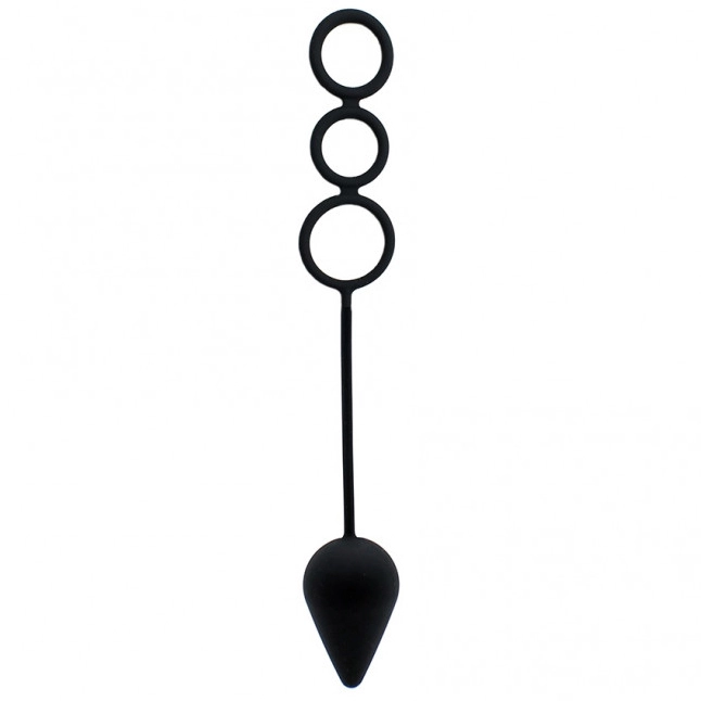 Zwarte siliconen driedubbele cockring met geintegreerde anaal plug. Ideaal opm te dragen tijdens masturbatie of terwijl je jouw partner neukt; de ringen geven jou een keiharde, kloppende erectie en de anale plug stimuleert jouw anus. Verkrijgbaar in twee uitvoeringen: S/M met 4cm Ø anaal plug en M/L met 4,6cm Ø anal plug.