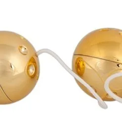 Deze set van 4 stuks goudkleurige lust ballen met een ø 3 cm verbonden met elkaar door een nylon koord.