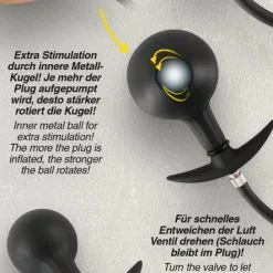 The user will feel wonderfully full with this amazing plug. The tapered tip and the velvety soft surface help the plug slide in very easily, while the stopper prevents it from sliding in too far. The plug can be easily inflated with the ball pump. It is also easy to release the air because it has a practical valve as well. The hose is also removable and the plug will release the air slowly if the hose is removed.