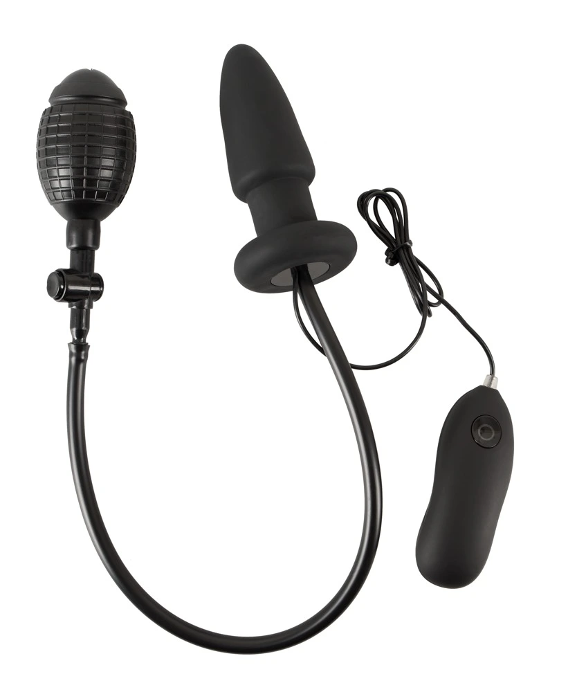 An inflatable vibro-butt plug with 7 different vibration modes and a remote control on a wire. With a pump ball for easy inflation and an outlet valve to let the air out again.