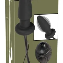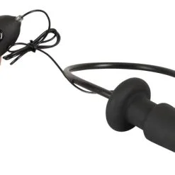 An inflatable vibro-butt plug with 7 different vibration modes and a remote control on a wire. With a pump ball for easy inflation and an outlet valve to let the air out again.