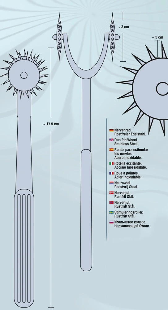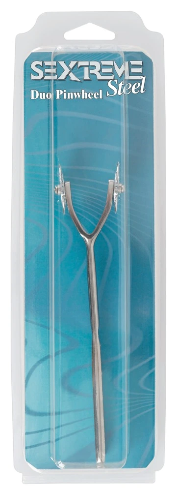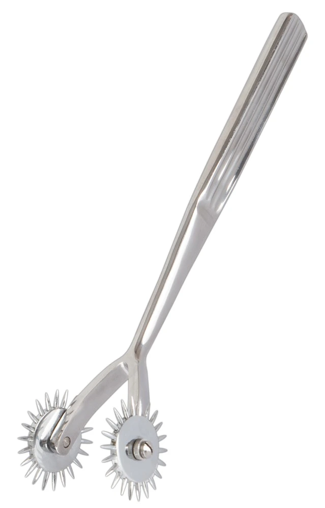 Dubbelle pinwheel met puntige spikes op een RVS handvat. De afstand tussen de twee wielen is 3 cm zodat u ze lekker gevoelig kunt bedienen 😀