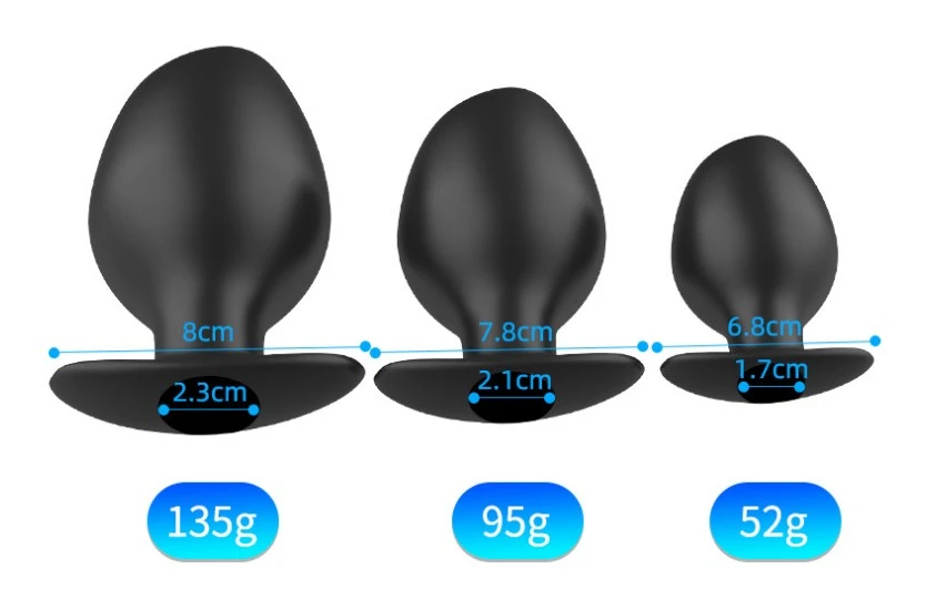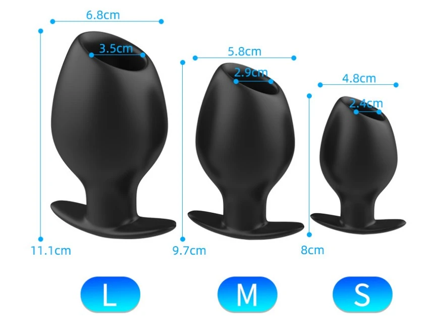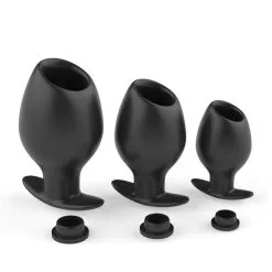 Holle zwarte tunnel Klysma plug in 3 maten welke gevuld kan worden met vloeistof