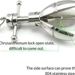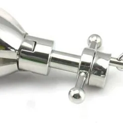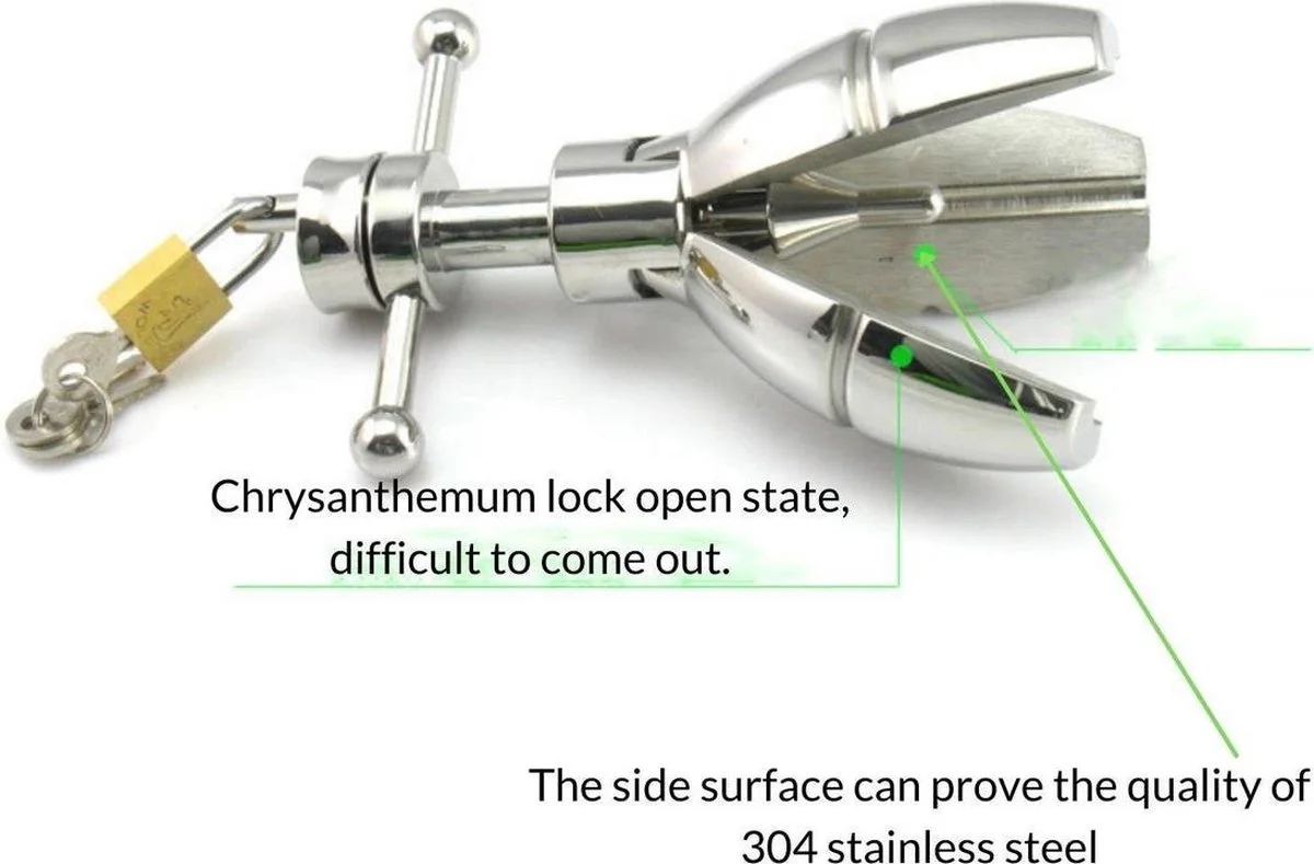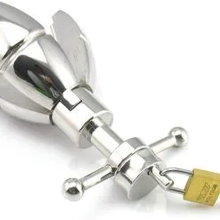Breng de roestvrijstalen butt-plug eenvoudig in met wat glijmiddel, waarna de pen aan het uiteinde wordt uitgetrokken en de plug zich uitspreidt en stevig op zijn plaats zit.