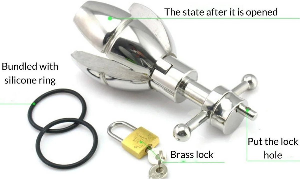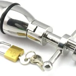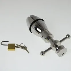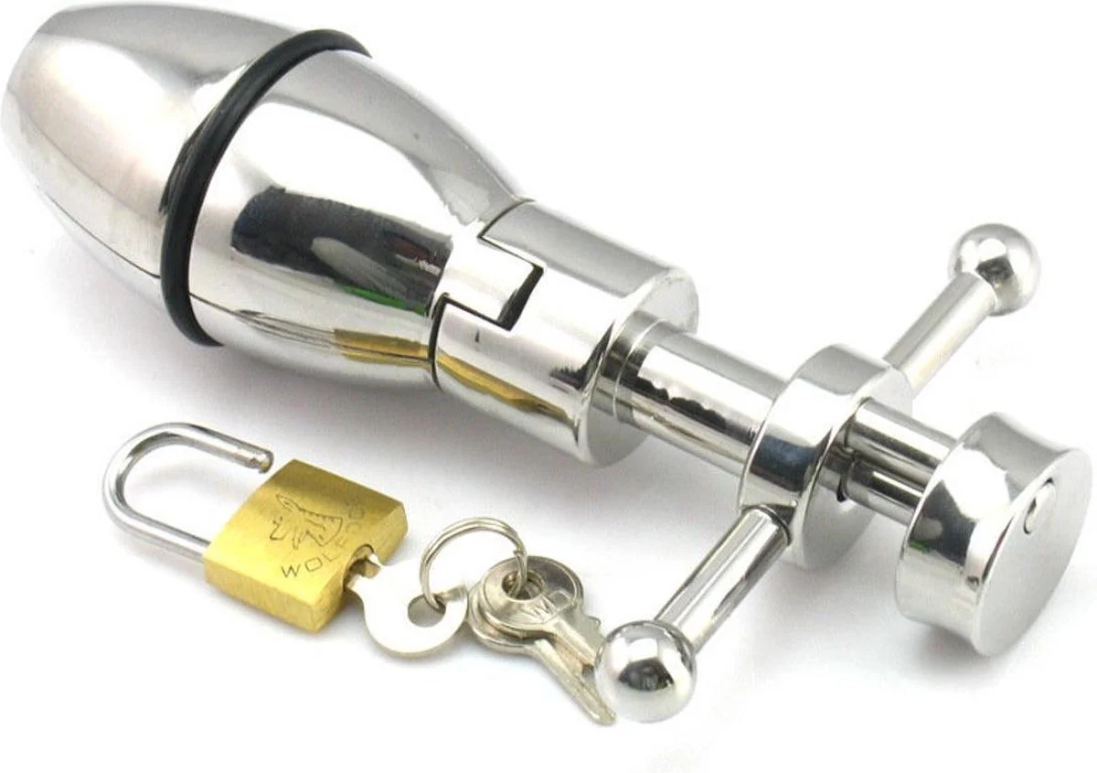 Een klein slot zorgt ervoor dat de plug niet kan worden verwijderd, en alleen de eigenaar van de sleutel kan het anale uitrekken stoppen.