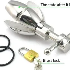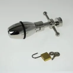 Een klein slot zorgt ervoor dat de plug niet kan worden verwijderd, en alleen de eigenaar van de sleutel kan het anale uitrekken stoppen.