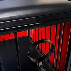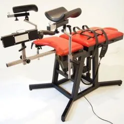 The images in our store show the gynchair with BDSM slaves cage in black powder-coated finish with black faux leather upholstered surfaces besides Bondage belts with Leather belts.