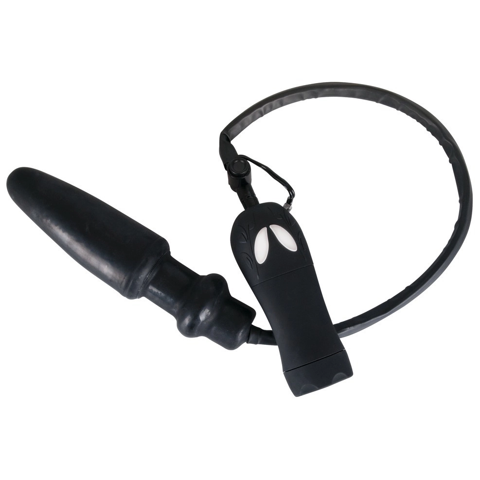 Instapmodel opblaasbare buttplug! Zwarte, automatisch oppompbare vibro-anaalplug met 5 functieniveaus door middel van een druk op de knop. Met aftapventiel. Plug lengte 17 cm, penetratie diepte ca. 11 cm, Ć 2 tot 4 cm, opblaasbaar tot 9.5 cm. Lengte slang tot control paneel ca. 37 cm.