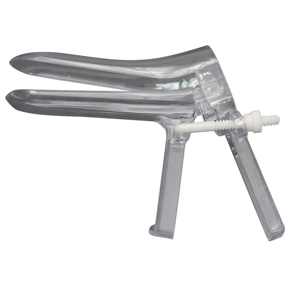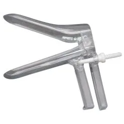 Transparante vagina speculum gemaakt van stevig glad materiaal. Te openen tot 12cm. Met draaistop.