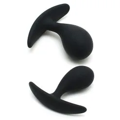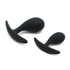 Set van 2 anatomisch gevormde anaalpluggen in twee verschillende maten. Het speciale ontwerp zorgt ervoor dat je hem overdag en ’s nachts kunt blijven dragen. Anaal plezier zowel voor hem als ook voor haar.