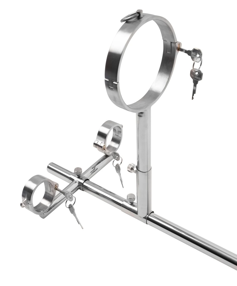 De onderdanige partner wordt op handen en voeten “gedwongen” in deze hoogwaardige en stevige DoggyBench. Deze vloerschandpaal is perfect voor vernederende SM spelletjes. De polsen, enkels en nek worden vastgezet, wat inhoudt dat de persoon aan de schandpaal op de vloer wordt vastgemaakt. Een ander accessoire is de houder voor de meegeleverde dildo die op zijn plaats kan worden bevestigd achter de onderdanige partner (die zich in de doggystyle-positie bevindt). De vloerschandpaal kan eenvoudig worden gemonteerd en gedemonteerd. Het is ook nog eens makkelijk op te bergen of mee te nemen in de meegeleverde opbergtas.