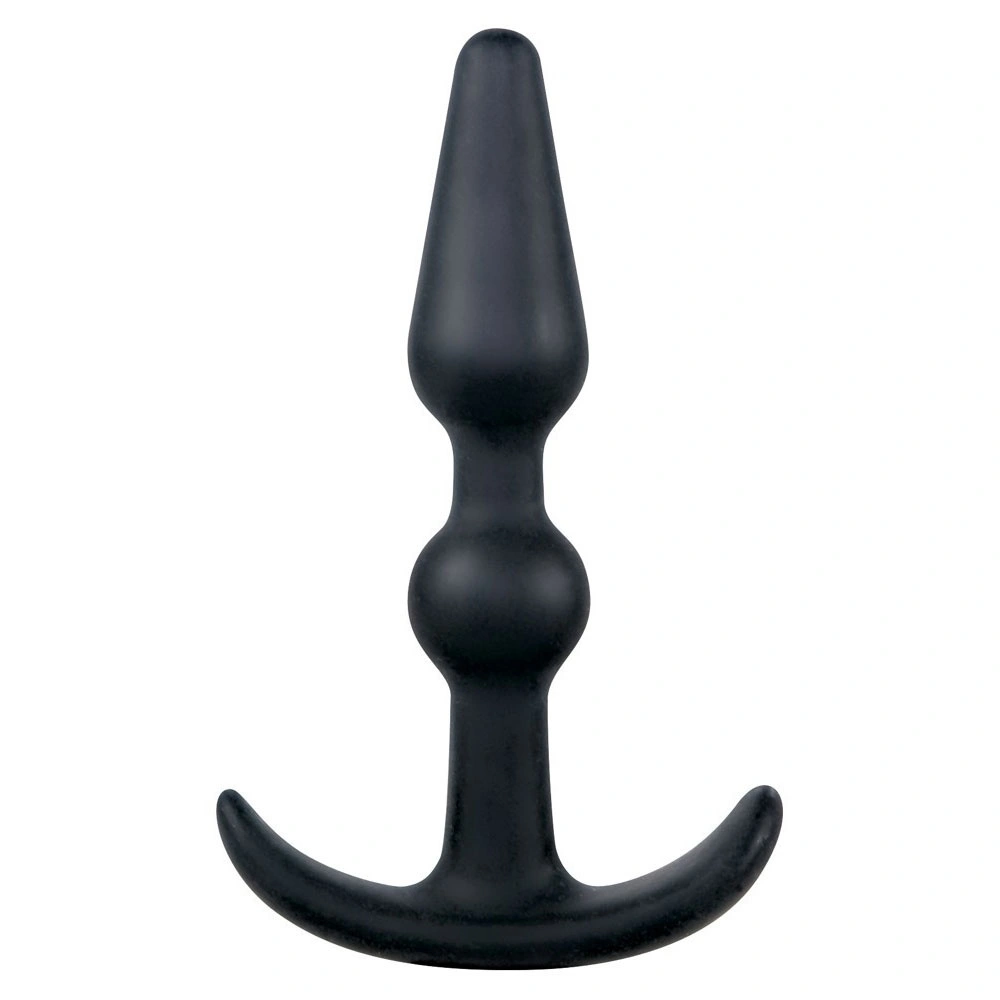 Zwarte anaal plug met kralen en taps toelopende tip. Voorzien van een gemakkelijke handgreep.