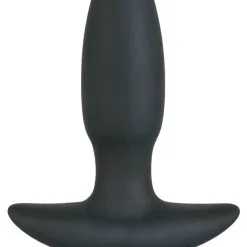 Zwarte buttplug met 5 vibratieniveaus met één druk op de knop. Met een terugtrekhandgreep. Volledige lengte 17 cm, insteekdiepte 13 cm. Ø 21 mm tot 45 mm. Materiaal: siliconen. (Batterijen a.u.b. apart bestellen: 1 x Mini penlight/AAA).