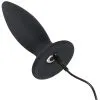 Zwarte buttplug met 5 vibratieniveaus met één druk op de knop. Met een terugtrekhandgreep. Volledige lengte 15 cm, insteekdiepte 11 cm. Ø 20 mm tot 30 mm. Materiaal: siliconen. (Batterijen a.u.b. apart bestellen: 1 x Mini penlight/AAA).