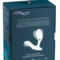 Ergonomisch gevormde anale plug met een gegroefde perineumstimulator. Aangenaam flexibel voor een ideale pasvorm en gemaakt van zijdeachtig siliconen. Stimuleert prostaat en perineum met 2 motoren die afzonderlijk instelbaar zijn en elk 10 fluisterstille trillingsmodi hebben. Inclusief afstandsbediening. Compatibel met de We-Connect-app voor IOS en Android via Bluetooth. Daar kunt u individuele stimulatieprogramma’s maken en de Vector-trillingen gemakkelijk bedienen met uw smartphone. De app beschikt ook over een chat-, stem- en videofunctie om seksuele nabijheid op lange afstand mogelijk te maken. Uit veiligheidsoverwegingen maakt de Bluetooth-interface alleen verbinding met 2 apparaten (afstandsbediening en 1 extra smartphone). Om de besturing te wijzigen, moet een reset worden uitgevoerd. Kan worden opgeladen met de meegeleverde magnetische oplader. Waterbestendig.
