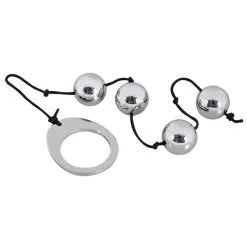 4 polished solid metal balls on a strand. Slowly insert it ball by ball and experience ultimate pleasure at each movement. To provide changing sensations, you can either warm it up (heating) or cool it down (fridge).