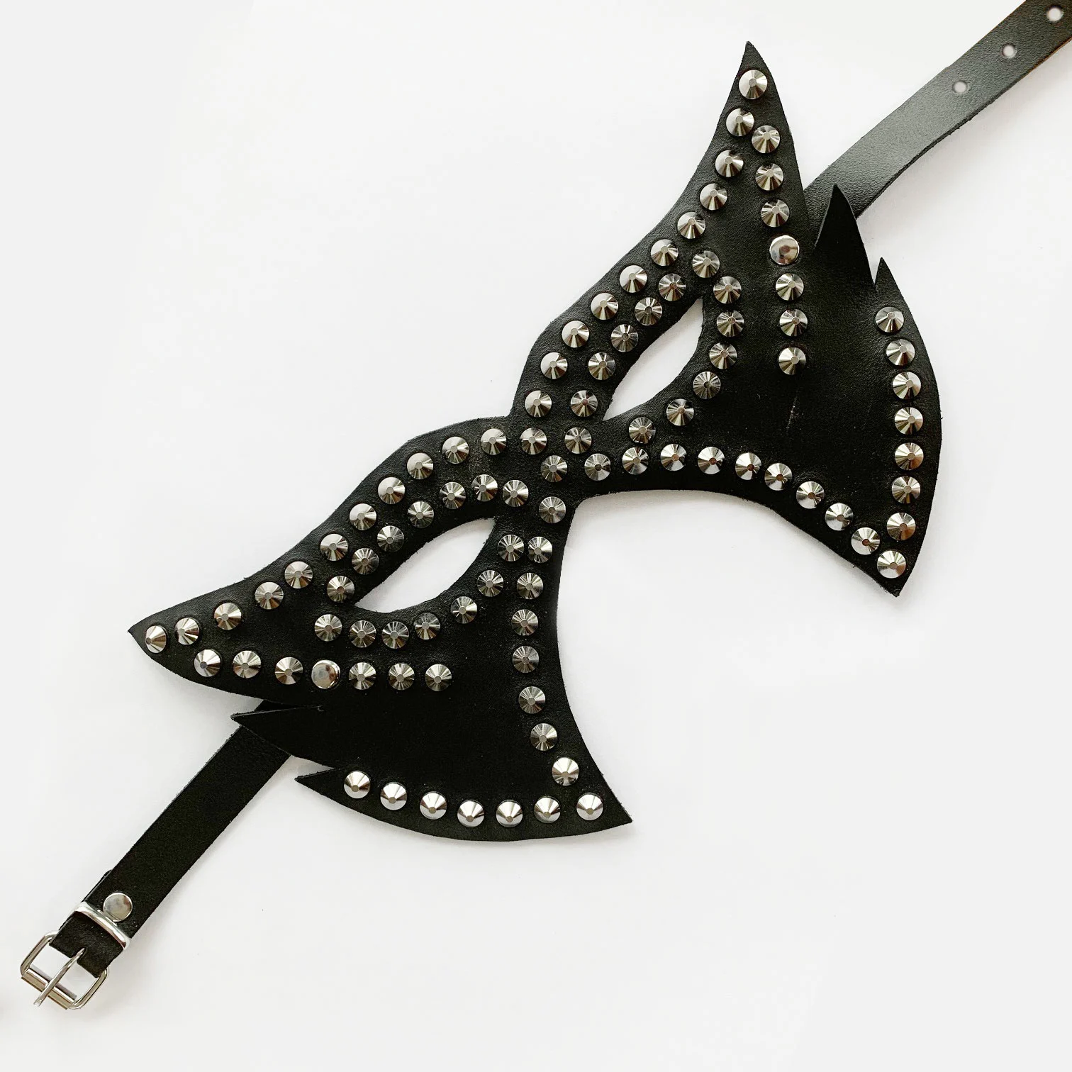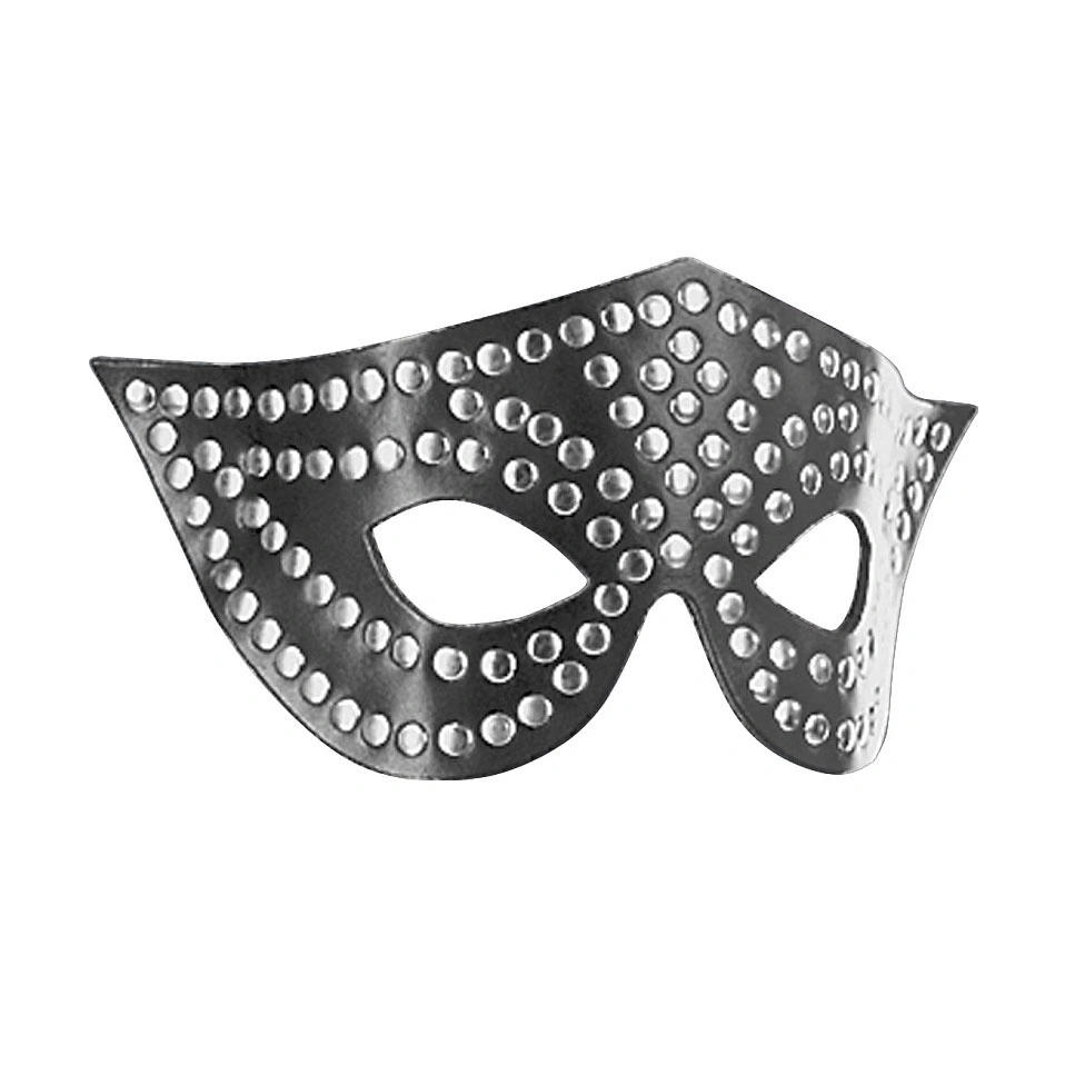 Zwarte split lederen oogmasker met buttons. Aan de achterzijde voorzien van elastische band.